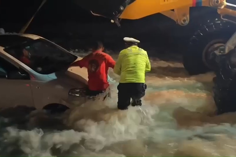 Gratitude poster honors Xinjiang officer who braved flood to save tourists