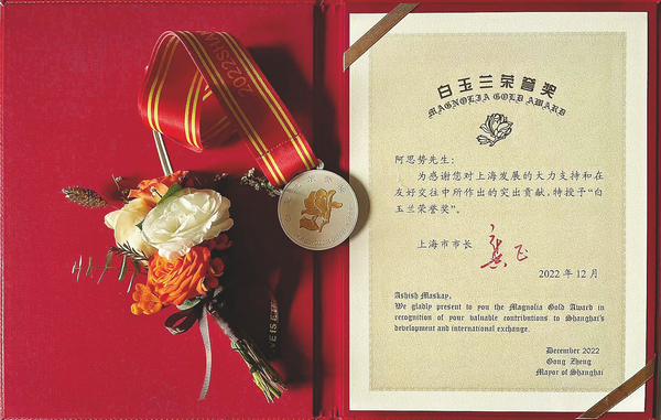 His dedication was recognized in 2020 and 2022 when he was awarded the Shanghai Magnolia Silver Award and Shanghai Magnolia Gold Award, respectively, recognizing his significant contributions to the city's development and international exchanges.