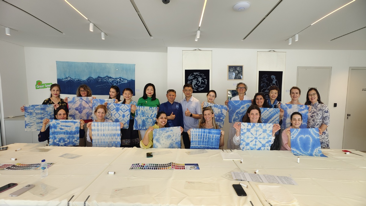 The exhibition featured six representative intangible cultural heritage items drawn from China’s renowned traditional "Four Tie-dye" techniques, including Nantong blue calico, Tongxiang blue calico, Bai tie-dye, Anning tie-dye, Cangnan blue jiaxie and Miao batik.