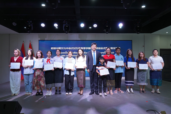 The China Cultural Center in Laos held a graduation ceremony for its 2025 Spring semester Chinese language class on June 27, drawing more than 100 guests, including students, parents and representatives from various local institutions.