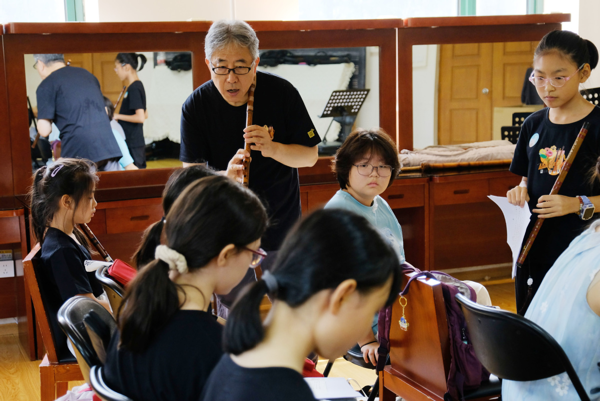 Traditional Chinese musical instruments, such as the xun (Chinese vessel flute), dizi (Chinese transverse flute), xiao (Chinese vertical end-blown flute), and guqin (Chinese zither), were highlighted during a summer camp from Aug 6 to 8 at the Forbidden City Concert Hall in Beijing.