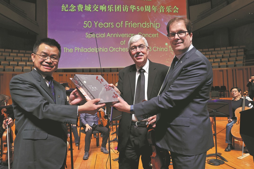新华社北京11月10日电11月10日,“跨越半个世纪的友谊”——纪念费城交响乐团访华50周年音乐会在北京举行。中共中央政治局委员、中宣部部长李书磊出席音乐会,宣读习近平主席致费城交响乐团总裁兼首席执行官马思艺的复信并致辞。