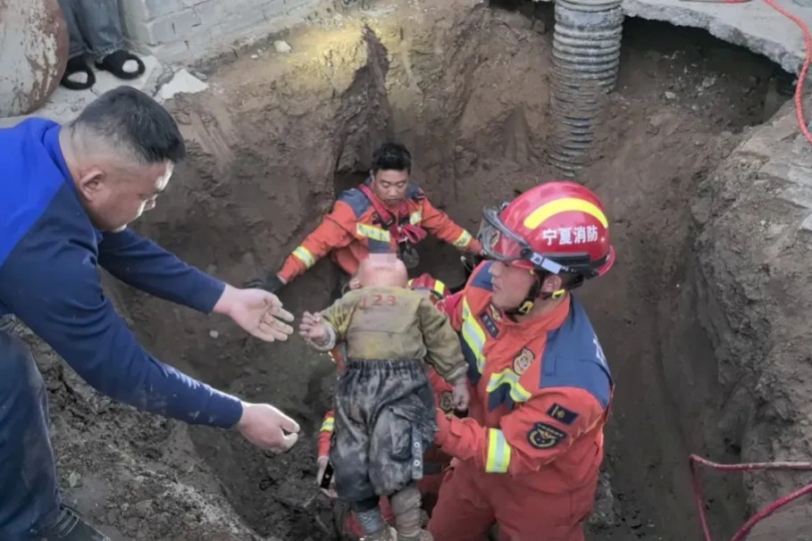 Firefighters rescue 2-year-old from septic tank in Ningxia