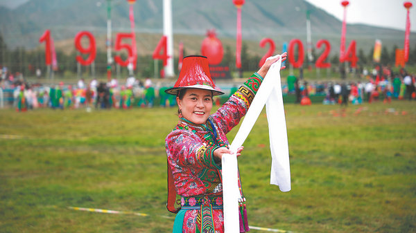 LANZHOU — During recent festivities to celebrate the 70th anniversary of Sunan Yugur autonomous county in Gansu province, the nomadic Yugur people's unique ethnic attire was an attraction in its own right.