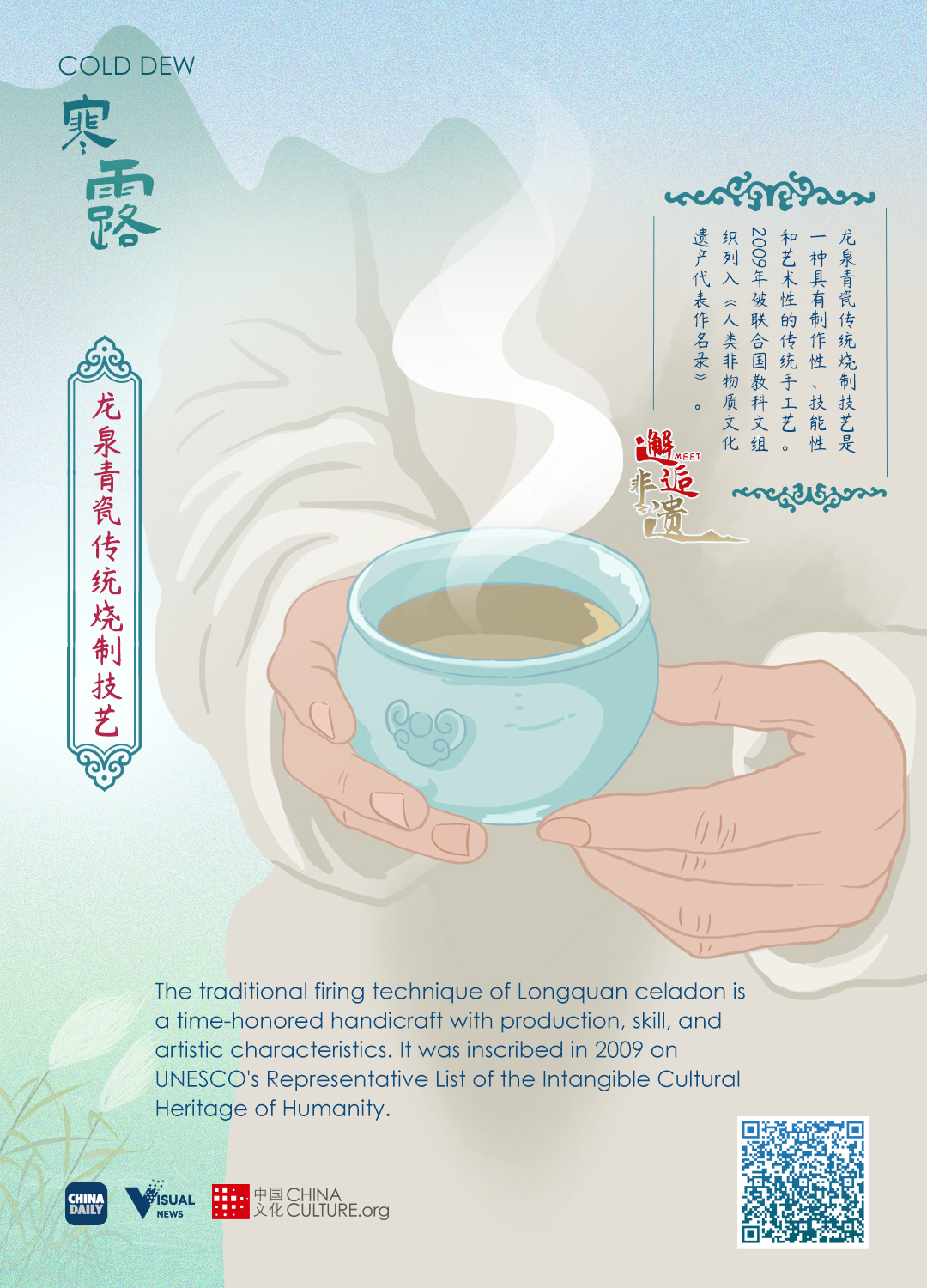 The traditional Chinese solar calendar divides the year into 24 solar terms. Cold Dew, (Chinese: 寒露), the 17th solar term of the year, begins this year on Oct 8 and ends on Oct 22.