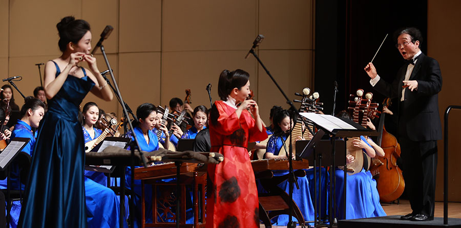 Under the baton of conductor Ye Cong, a concert is staged at the opera house of the Central Conservatory of Music in Beijing on Sunday. [Photo provided to chinadaily.com.cn]