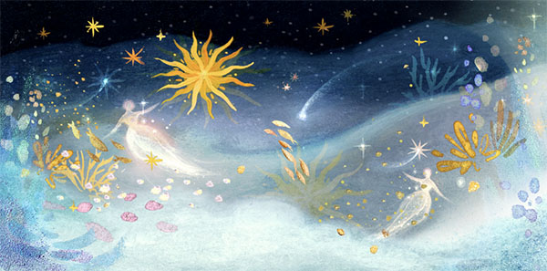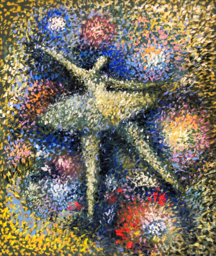 On closer examination, people will discover it is actually a wind-powered installation, which was inspired by Xiaomeisha's landscape and created by Katie Rodgers, an artist from the United States. The work is derived from a painting Rodgers made for Xiaomeisha, Waves in the Cosmos, which is now on show at a joint exhibition of her works and photos of Chinese artist Yue Hongjun.