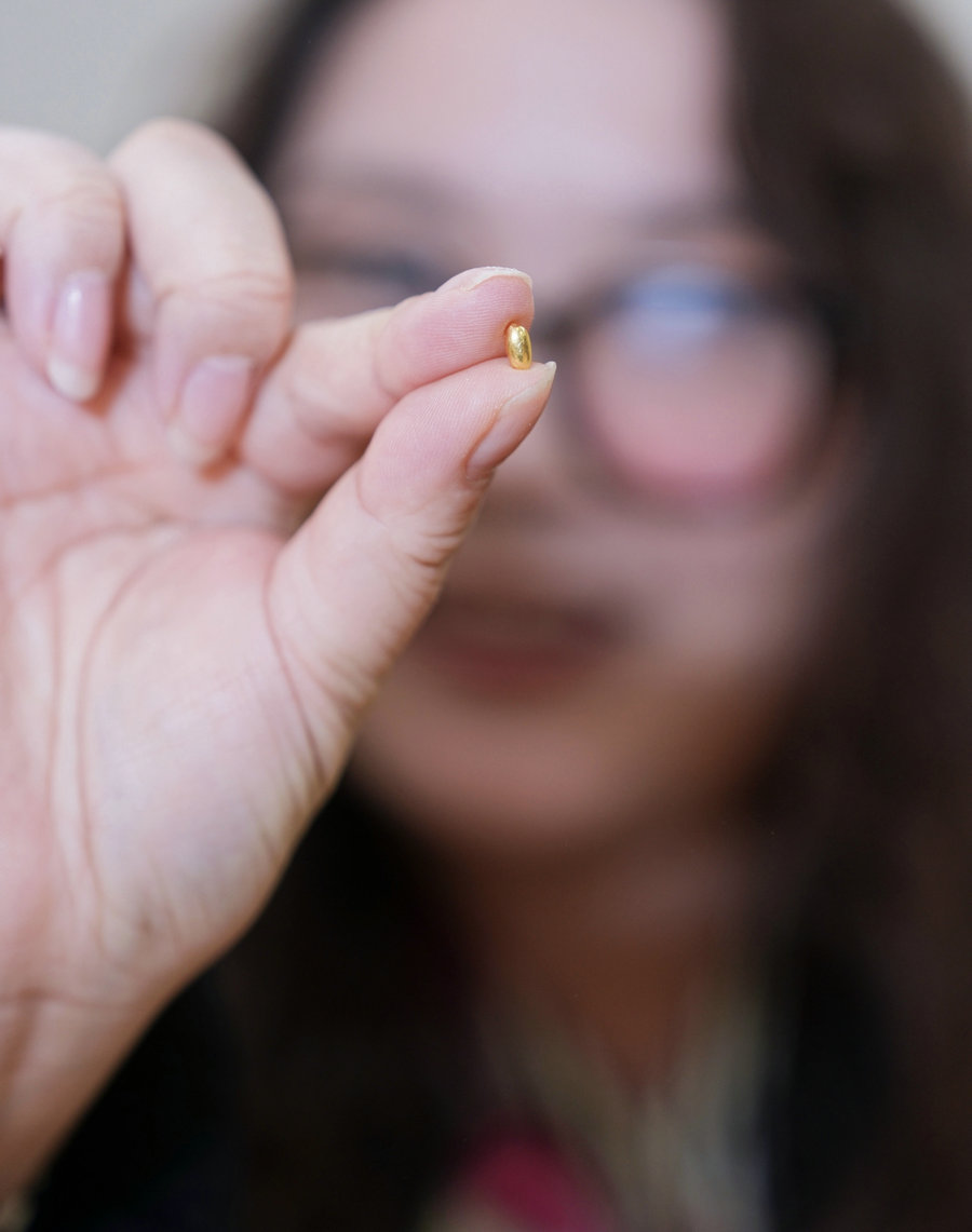 It will take good eyesight, patience and also luck to distinguish the gold grains from the real ones. If successful, the visitors can keep the gold ones.