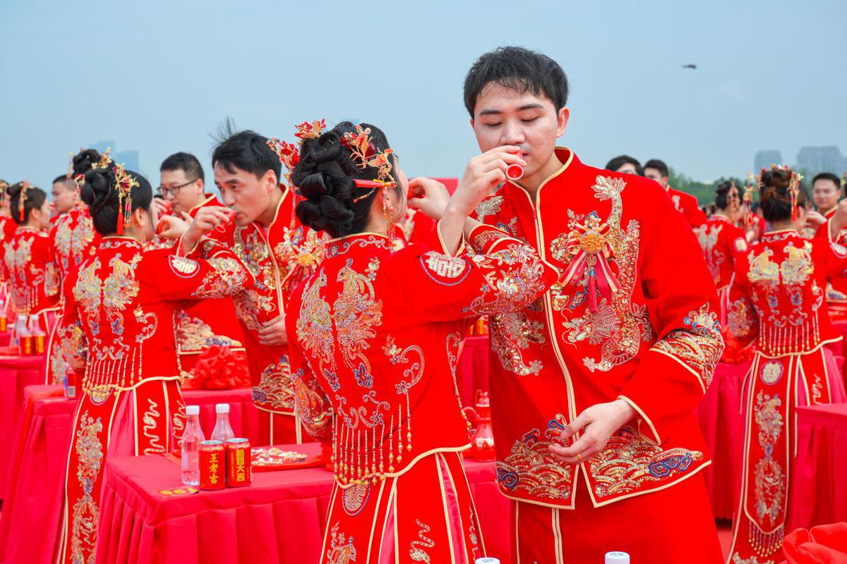 A Chinese-style group wedding ceremony featuring 302 couples was held on Tuesday in Hefei, Anhui province. [Photo provided to chinadaily.com.cn]