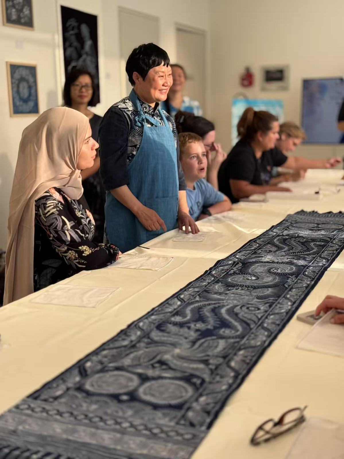 The exhibition featured six representative intangible cultural heritage items drawn from China’s renowned traditional "Four Tie-dye" techniques, including Nantong blue calico, Tongxiang blue calico, Bai tie-dye, Anning tie-dye, Cangnan blue jiaxie and Miao batik.