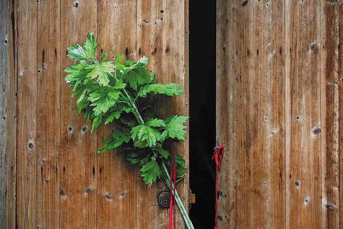 Hanging: They hung mugwort branches and leaves on the door. The strong aroma of mugwort can repel mosquitoes, flies and other insects, reducing the chance of diseases spread by them.