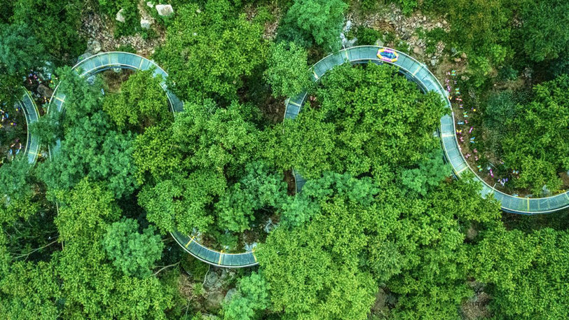 The rafting course meanders through the forest. [Photo provided to chinadaily.com.cn]