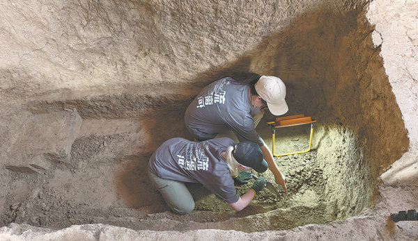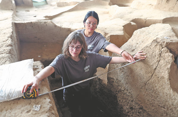 Haley Olinyk (in front) works at the site as part of an international field archaeology summer program in Beijing. [Photo by Zou Hong/China Daily]