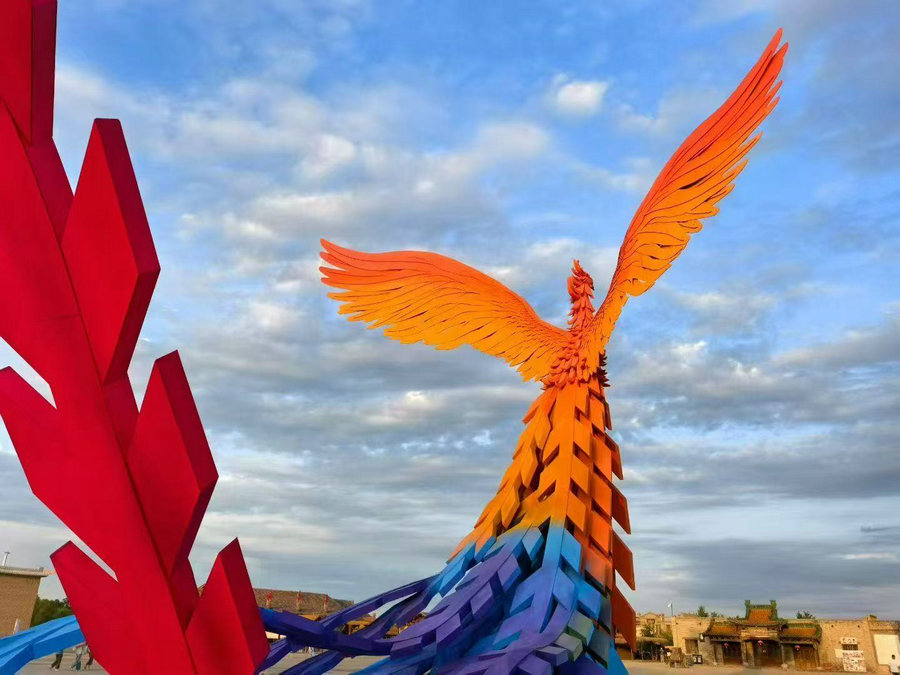 Installations that look back on the history of Ningxia and Northwest China were unveiled at  At the Foot of Helan Mountain, a public art festival that opened on July 18, at the Zhenbeipu Western Film Studio. [Photo provided to chinadaily.com.cn]