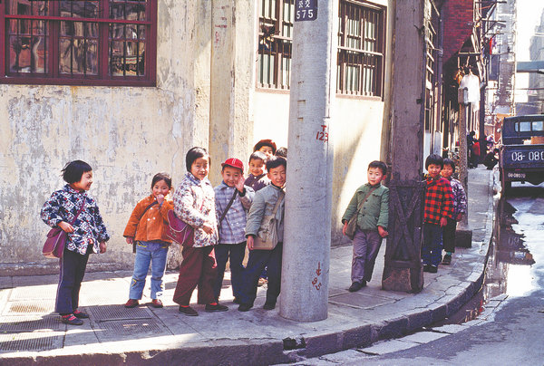 Children make up a large part of Emery's photos. Through his lens, he captured children playing on the streets, as well as groups of children he encountered at a kindergarten or on their way to school, most giving him a smile and wave.