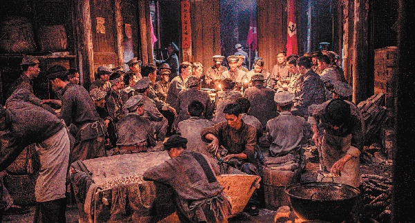 Pausing before the oil painting Autumn Harvest Uprising, Wang was reminded of scenes from the show — battle flags waving in the tumultuous years from the 1927 Nanchang Uprising to the pivotal 1935 Zunyi Conference, which shaped the Communist Party of China's course during the Long March (1934-36).