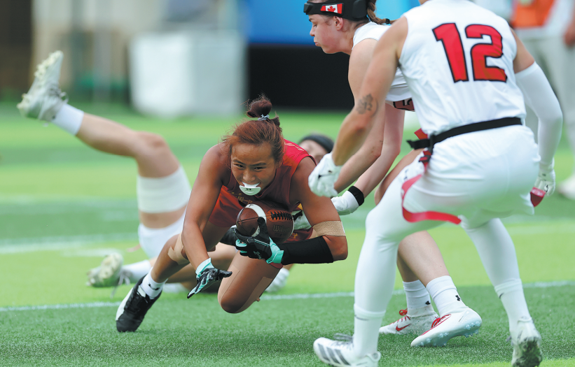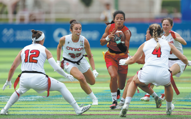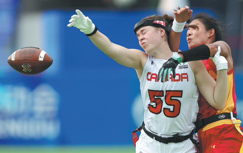 China only narrowly lost to Austria 45-47 in its opening match on Aug 14, and went on to defeat Japan 28-22 in Saturday's semifinal of the fifth place playoffs — a notable victory against the 2024 IFAF Women's Flag Football World Championship bronze medalist.